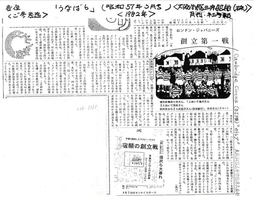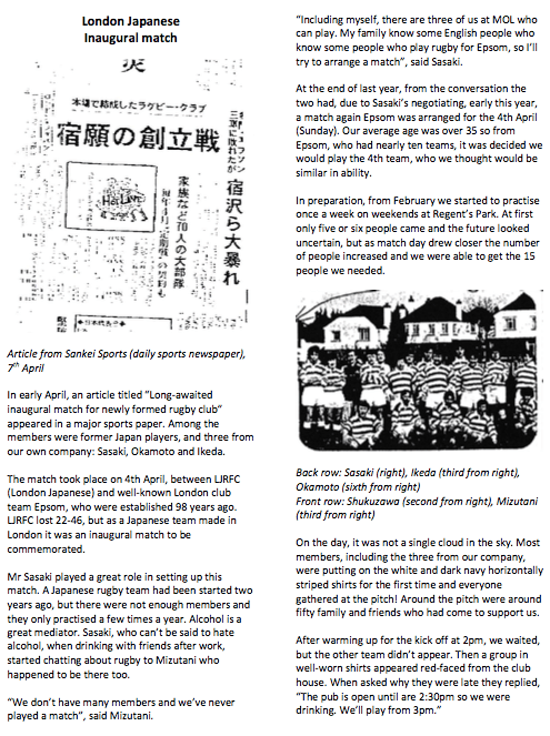 Archive Below are articles and stories from the London Japanese archive, available in Japanese and English! Inaugural Match Japanese – Click on the image to enlarge English – Click on the image to enlarge A UK Japanese Rugby Team Japanese – Click on the image to enlarge English – Click on the image to enlarge Share this:Tweet